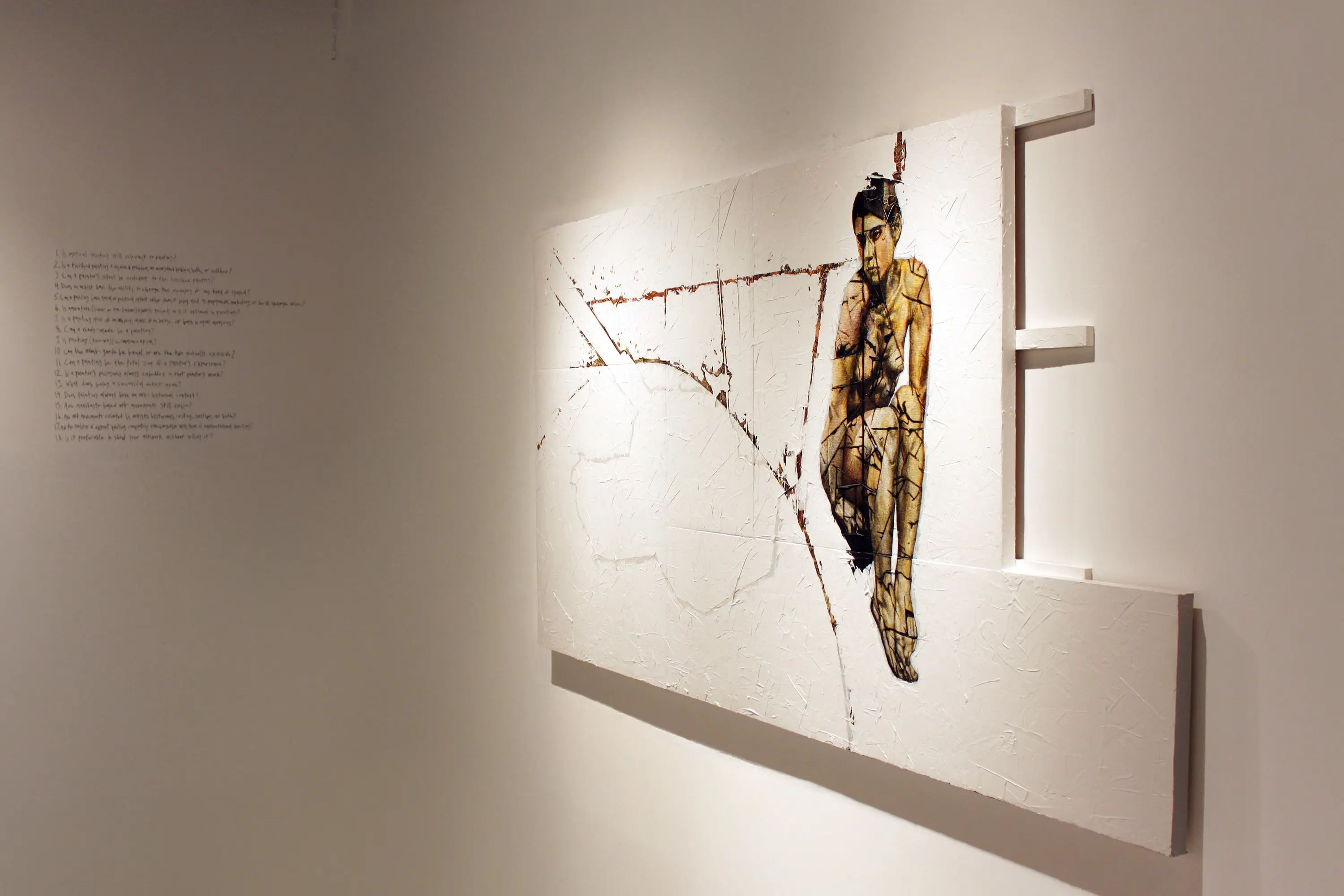 This project was built on an investigation into how we define, value, and use art. Ninety-four questions about painting, as proxy for all art, were written on the gallery walls. A selection of my own answers were made concrete as artworks, inside and outside of the gallery. The resulting message was that painting is not a unitary category, and that most nontrivial questions about art can only provide the axiology of the examined.